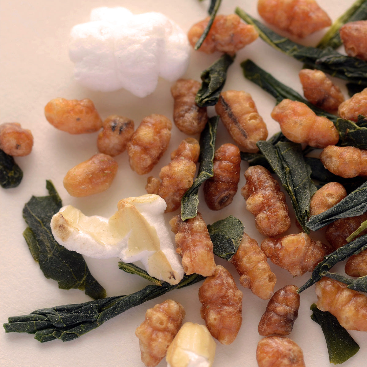 Genmaicha is a blend of roasted rice and tea leaves, with popped riced decorations known as "hana" (literally translated to "flowers"). It offers a highly-balanced harmony of aromatic rice and light flavor and is beloved by many throughout Japan and around the world.