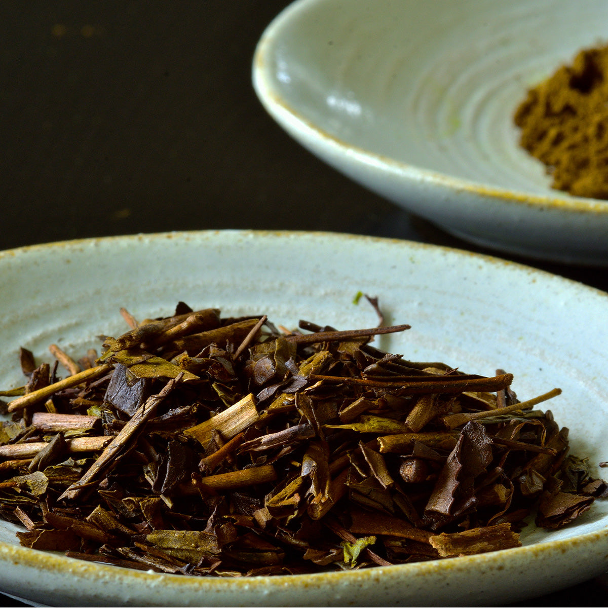 Houjicha tea leaves are a dry brown. The appearance differs depending on the plantation, as they may have a larger proportion of leaves or stems. Most of the catechin and caffeine are decomposed during the roasting process, resulting in a crisp and very gentle flavor.
